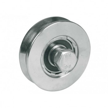 Galet (roue) pour portail Ø100 INOX 304 - gorge en V - axe à visser - 1 roulement à billes