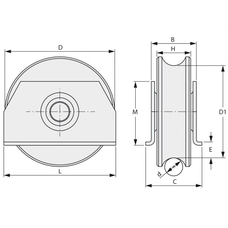 Galet (roue) pour portail Ø120mm - gorge 1 2 ronde (demi ronde) Ø20mm - grandes flasques à souder - 2 roulements à billes
