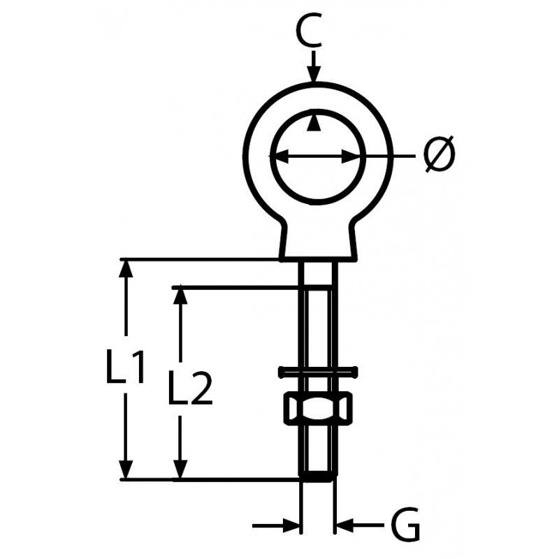Piton à oeil - vis métrique - inox 316