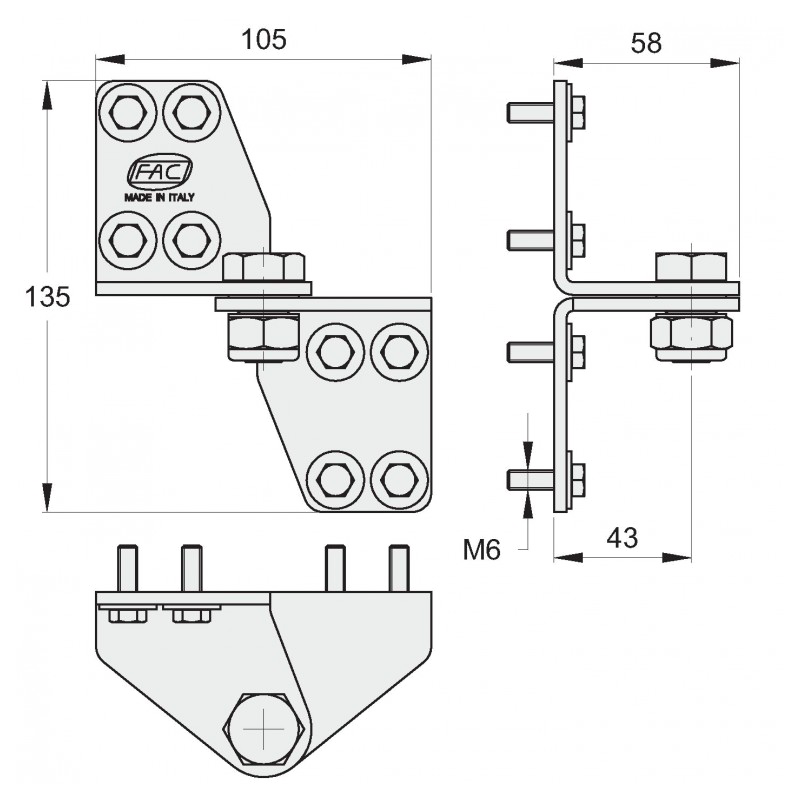 Découvrez la charnière désaxée de FAC srl, une marque reconnue pour ses produits haut de gamme fabriqués en Italie. Cette charnière, faisant partie de la gamme "Probablement les meilleurs accessoires de portails d'Europe", est spécialement conçue pour les portails coulissants sectionnels à angle. Elle assure une ouverture fluide des panneaux sans chevauchement des crémaillères, un élément clé pour le bon fonctionnement de votre portail sectionnel.