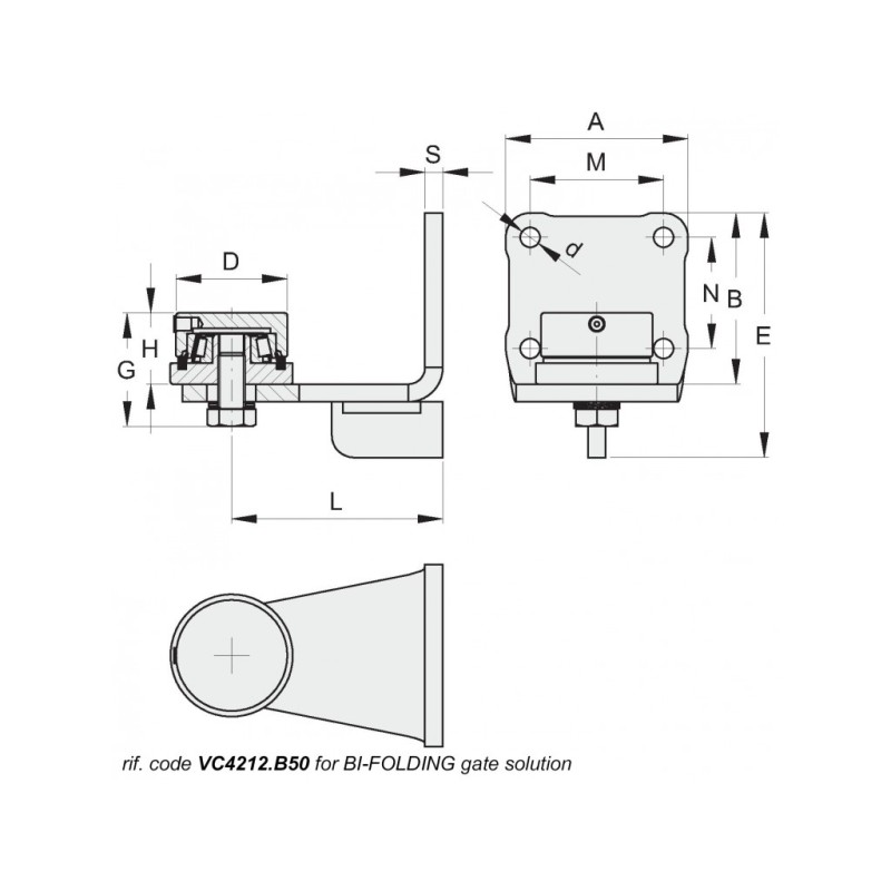 Le Pivot inférieur ø50mm à souder sur platine pour portails Bi-folding de FAC srl combine durabilité et performance. Conçu en acier galvanisé, il assure une ouverture/fermeture fluide avec réduction de friction grâce à son roulement intégré. Idéal pour portails pliants, il simplifie l'installation et renforce la longévité du portail. Produit en Italie, il représente la qualité et la fiabilité pour un usage intensif.