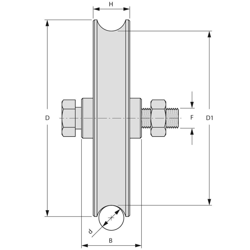 • Galet (roue) pour portail Ø120mm - gorge 1 2 ronde (demi ronde) Ø16mm - axe à visser - 1 roulement à billes