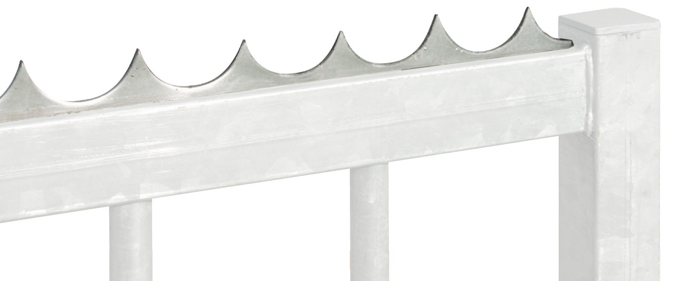 - Polyvalence : Que vous disposiez d'un portail neuf ou existant, d'une clôture ou d'un mur, la bordure défensive s'adapte à tous les supports. Elle peut être vissée, soudée ou même rivetée selon le support existant.