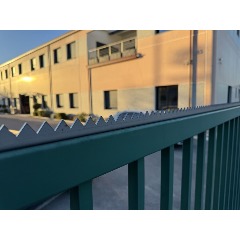 Explorez notre bordure défensive unique, façonnée en acier brut et méticuleusement découpée au laser, offrant une combinaison parfaite de style et de sécurité pour vos portails. Cette bordure, avec ses pointes finement aiguisées, n'est pas seulement un choix esthétique mais aussi un moyen efficace de prévenir les intrusions indésirables. Spécialement conçue pour Bricometal.shop, cette bordure se distingue par son originalité et sa qualité, exclusives à notre marque et au marché français, ce qui en fait un produit phare de notre collection.