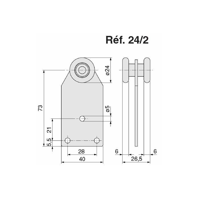 • Chariot galvanisé - 2 roues ø24mm - pour porte coulissante suspendue - Charge 30kg