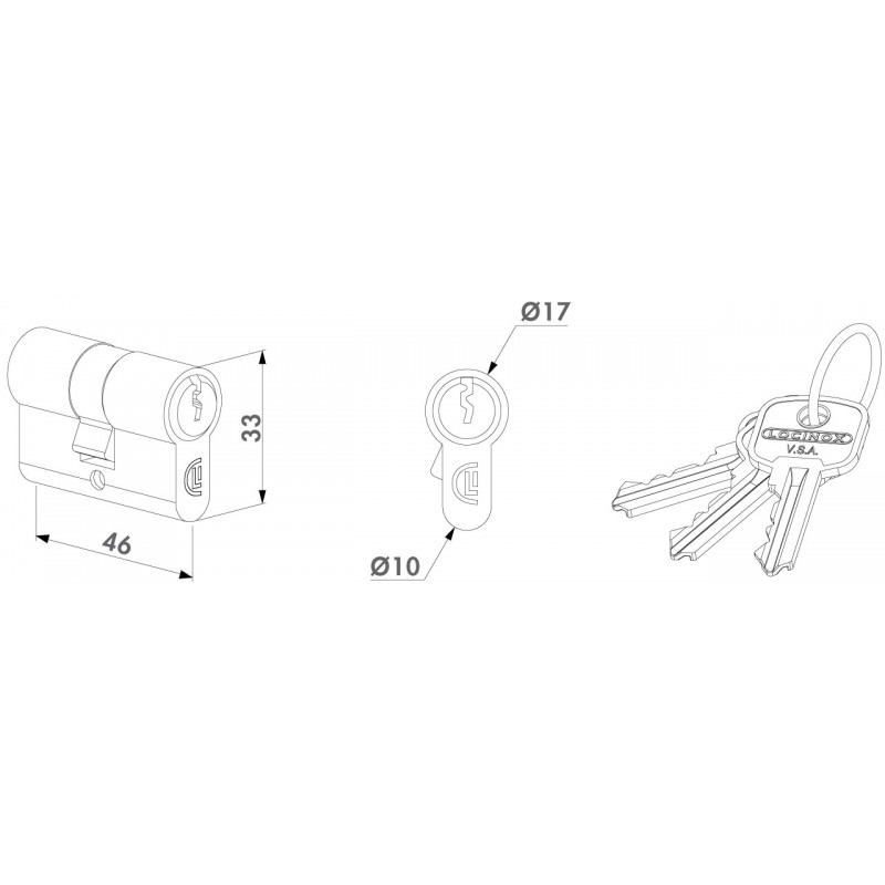 Le cylindre européen de 46mm, série identique, est conçu pour les serrures Locinox TWIST. Avec une dimension de 23 mm de chaque côté (23-23 mm), il est fourni avec trois clés et est parfait pour les installations nécessitant l'accès à plusieurs portes avec une seule clé. Idéal pour les bâtiments résidentiels, les bureaux et les locaux industriels.