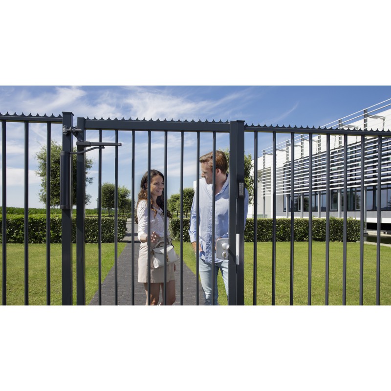 Le ferme-portail Verticlose-2 est un dispositif haut de gamme conçu pour la fermeture de portails pesant jusqu'à 150 kg. Ce modèle se distingue par sa polyvalence et ses fonctionnalités avancées, offrant une solution idéale pour les installations nécessitant des charnières à 90° et à 180°. Grâce à sa pré-tension intégrée et son réglage continu de la vitesse de fermeture ainsi que de l'à-coup final, le Verticlose-2 assure une installation simple et rapide. Son design compact et esthétique, avec une finition en aluminium anodisé, le rend résistant aux rayures et à la corrosion, tout en garantissant une intégration harmonieuse à tout type de portail.