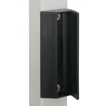 Gâche en polyamide pour portillon de jardin. La fixation par Quick-Fix assure un montage rapide, simple et robuste sur des poteaux carrés. Pour profil de 40 mm.