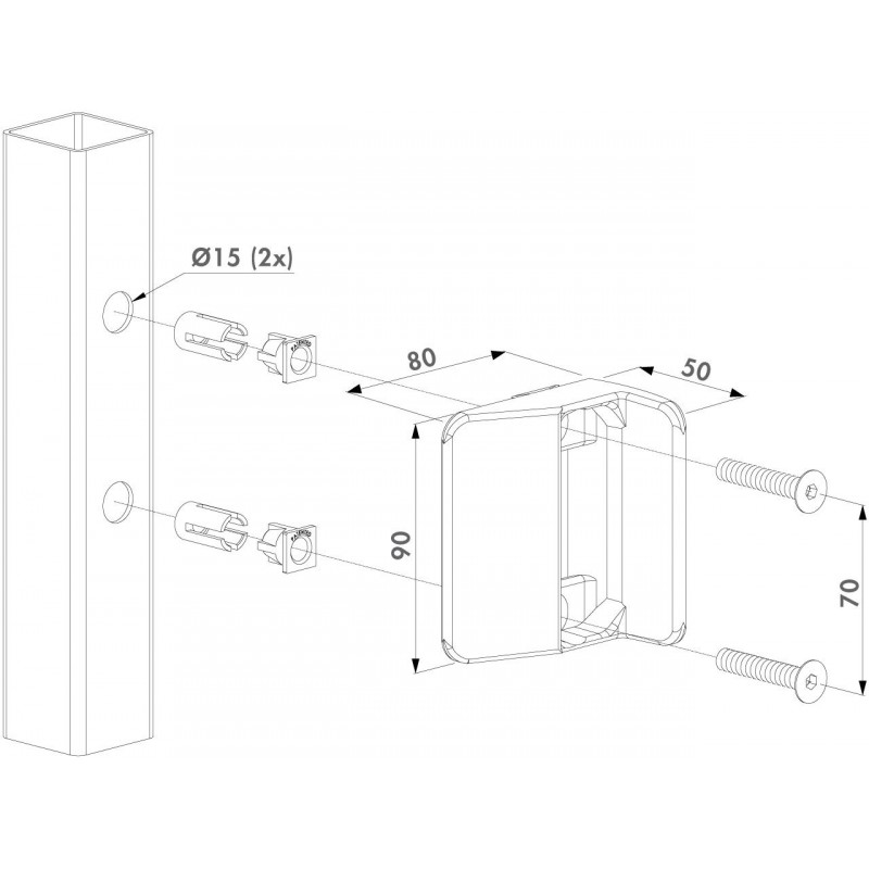 Elle est conçue pour les profils carrés de 40 mm et plus, offrant ainsi une grande polyvalence pour différents types de portails pivotants.