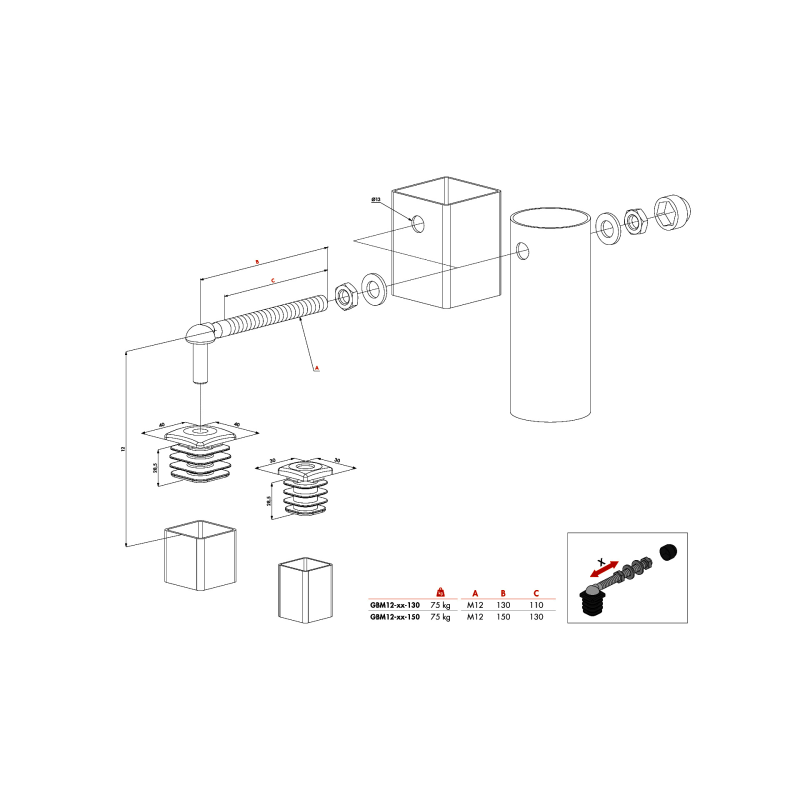 • Bouchons en polyamide: Inclus pour une installation facile sans soudure. Disponibles en tailles 30x30 mm ou 40x40 mm.