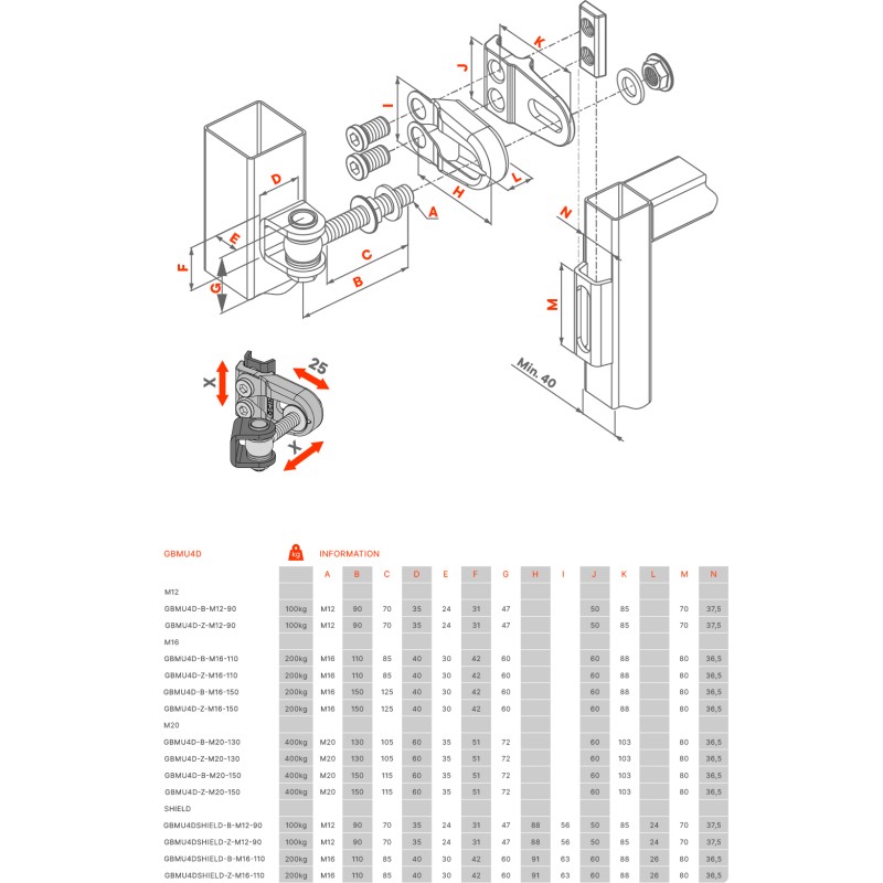 Gond industriel M16 110mm | réglage 4D | zinguée (vendu en unite)