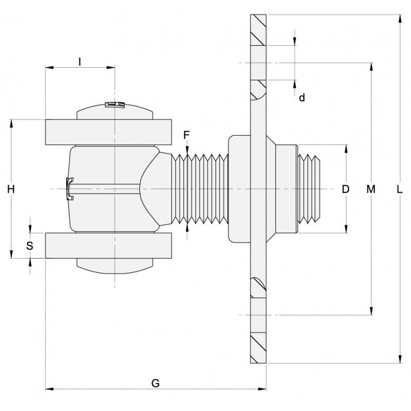 • Gond sur platine 4 trous Ø 60 plaque 130x130