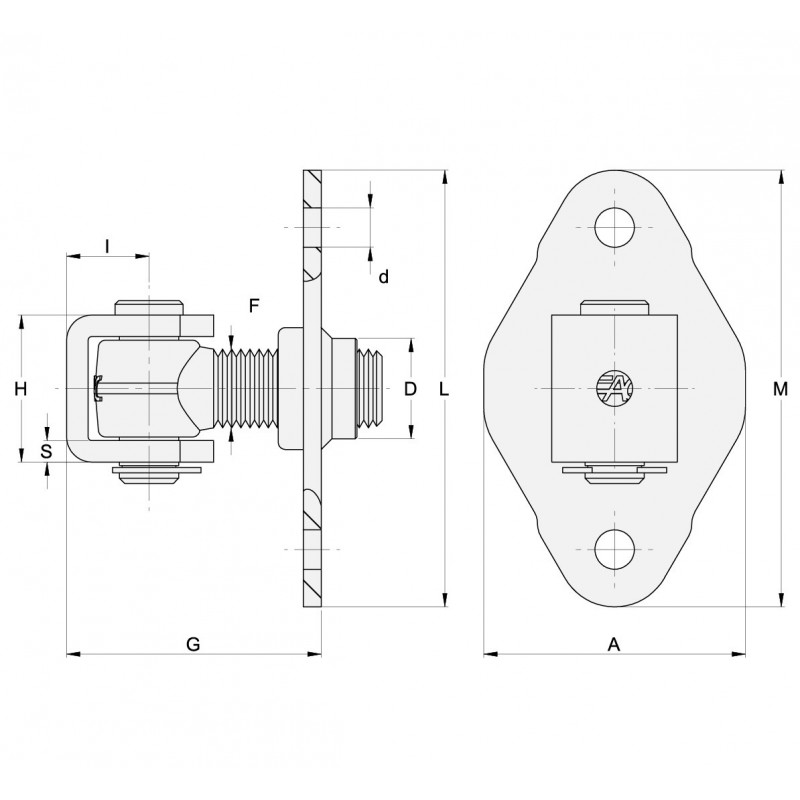 • Gonds sur platine avec étrier