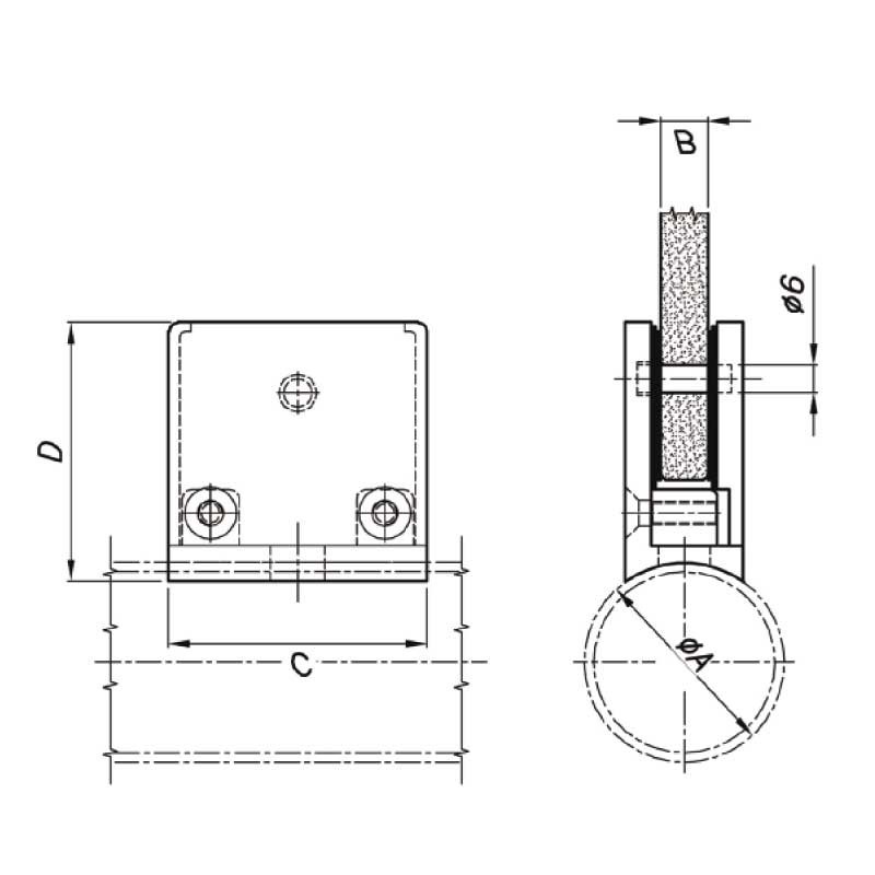 • Pince avec téton de sécurité - 53x53mm pour surface plane - épaisseur verre 8 à 10mm
