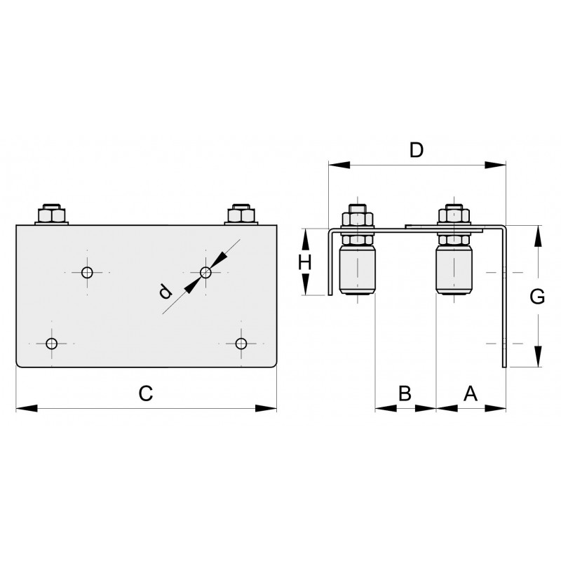 Plaque de guidage a jupe percée 4 olives Ø 40 réglage 60 80 mm H 65 mm
