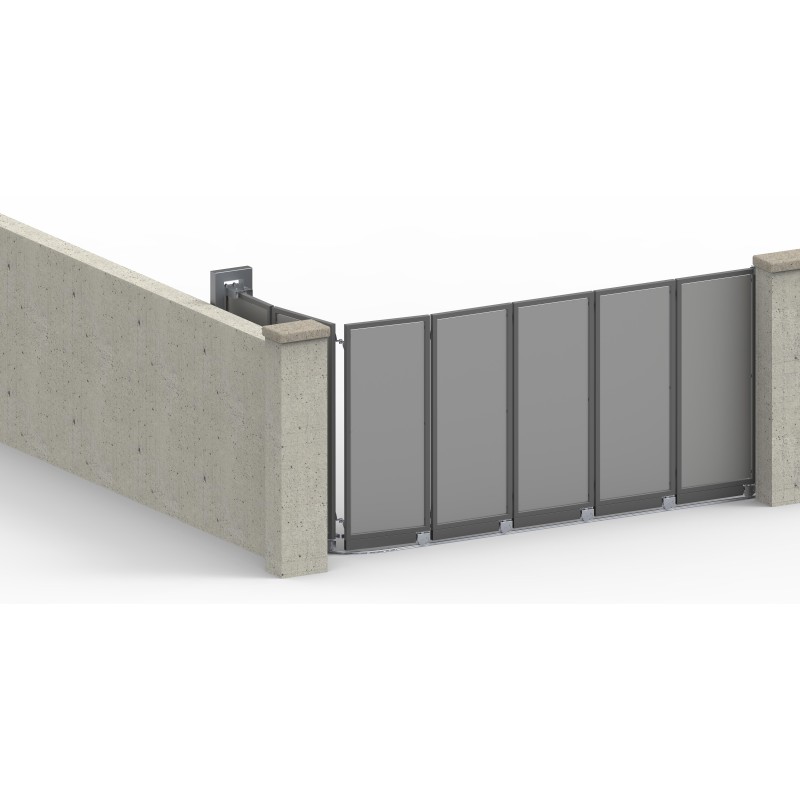 Optimisez votre espace de stationnement avec notre système Optimus, une exclusivité Bricometal ! Idéal pour les espaces réduits, ce portail coulissant avec panneaux verticaux articulés peut suivre un angle de 90° à 179°, permettant une utilisation efficace de l'espace disponible. Après un an de recherche et de développement par FAC srl (un fabricant italien de premier plan pour les accessoires de portails), ce portail complet offre une finition exceptionnelle et une grande fiabilité, évitant les pannes fréquentes des contrefaçons (souvent imitées mais jamais égalées).