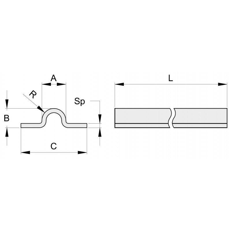 Rail à visser non percé - larg 16 mm - 6m - INOX