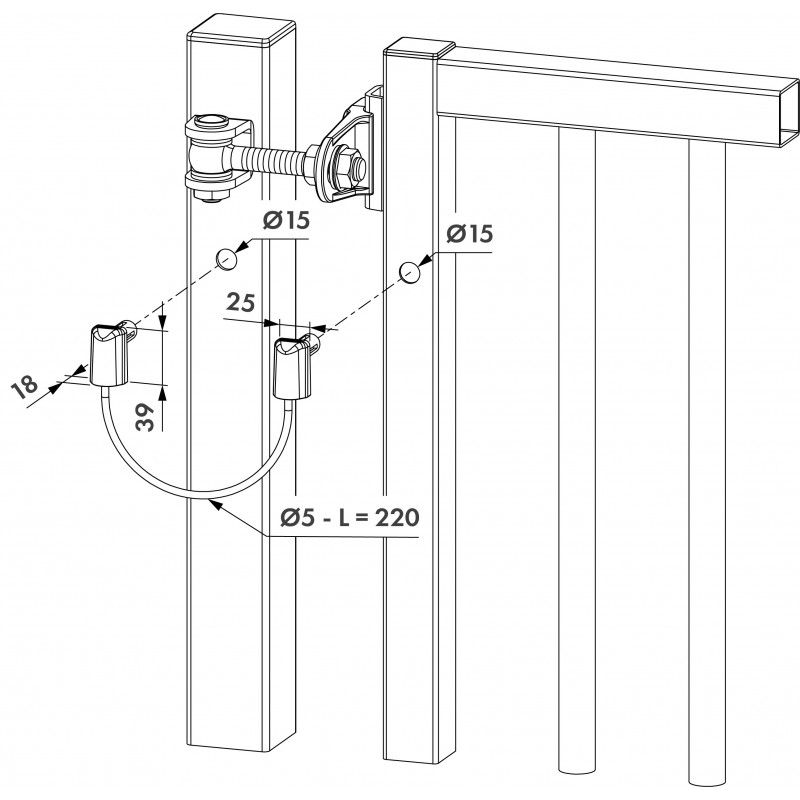 Le B-SAFE se fixe facilement sur un portail en fabrication ou en rénovation grâce au système de fixation Quick-Fix breveté. Il est calculé pour résister à une force de 1000 kg, conformément à la norme EN 12604. La longueur du câble est de 220 mm, avec une section de 4 mm et une gaine de protection transparente de 1 mm d'épaisseur pour une meilleure résistance.