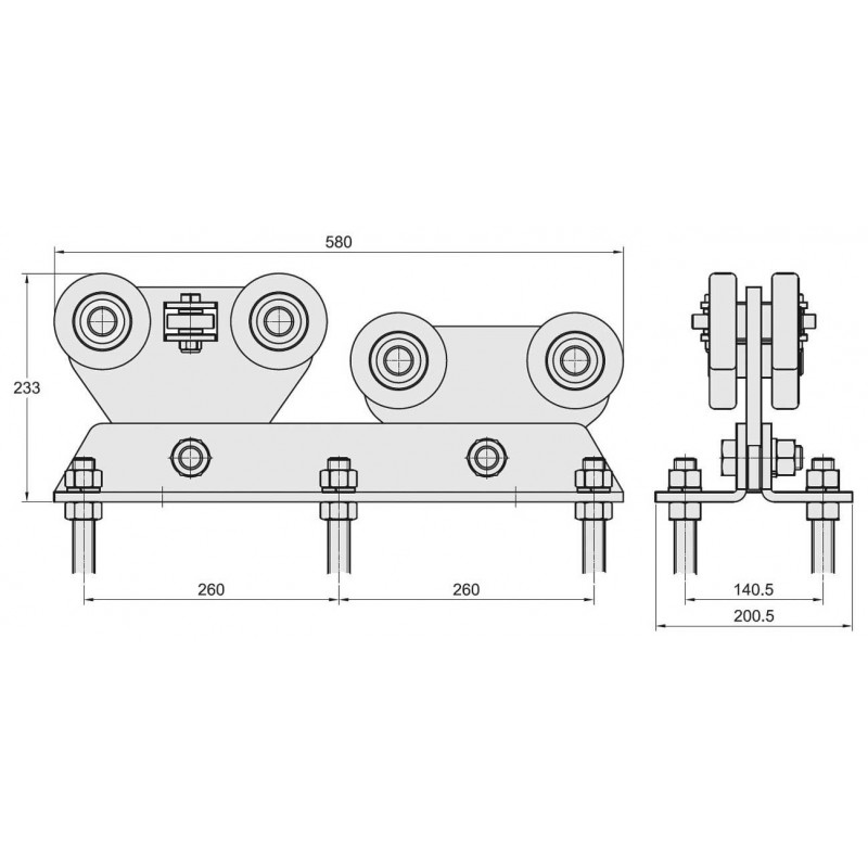 Chariot pour portail autoportant pour les rails de série P140 FAC - double réglage - acier galvanisé - 1x pièce