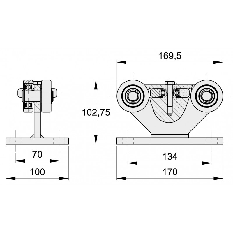 • Chariot pour portail autoportant pour les rails de série P53 FAC - double réglage - Inox 304 - 1x pièce
