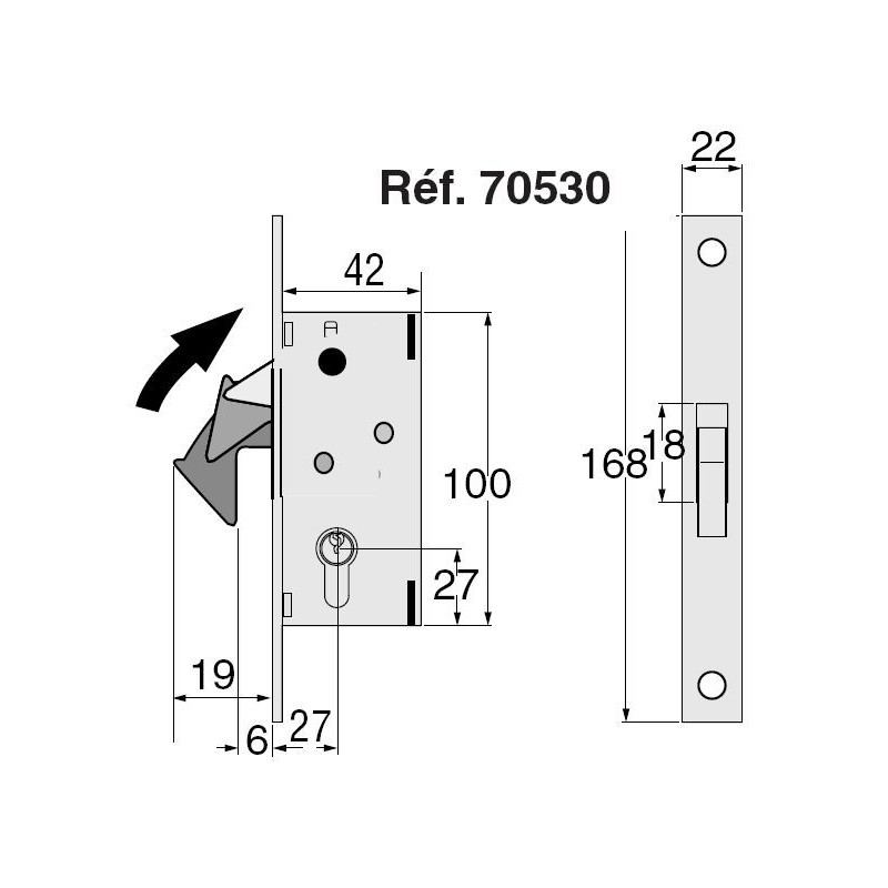 Serrure à crochet - Pène rentrant petite sans cylindre avec gâche