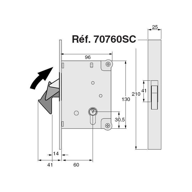 Serrure à crochet pour portail coulissant - grand modèle - vendu sans cylindre