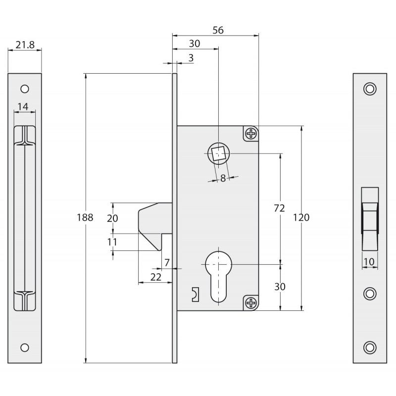 Serrure à crochet pour portail coulissant - petit modèle - vendue sans cylindre avec gâche