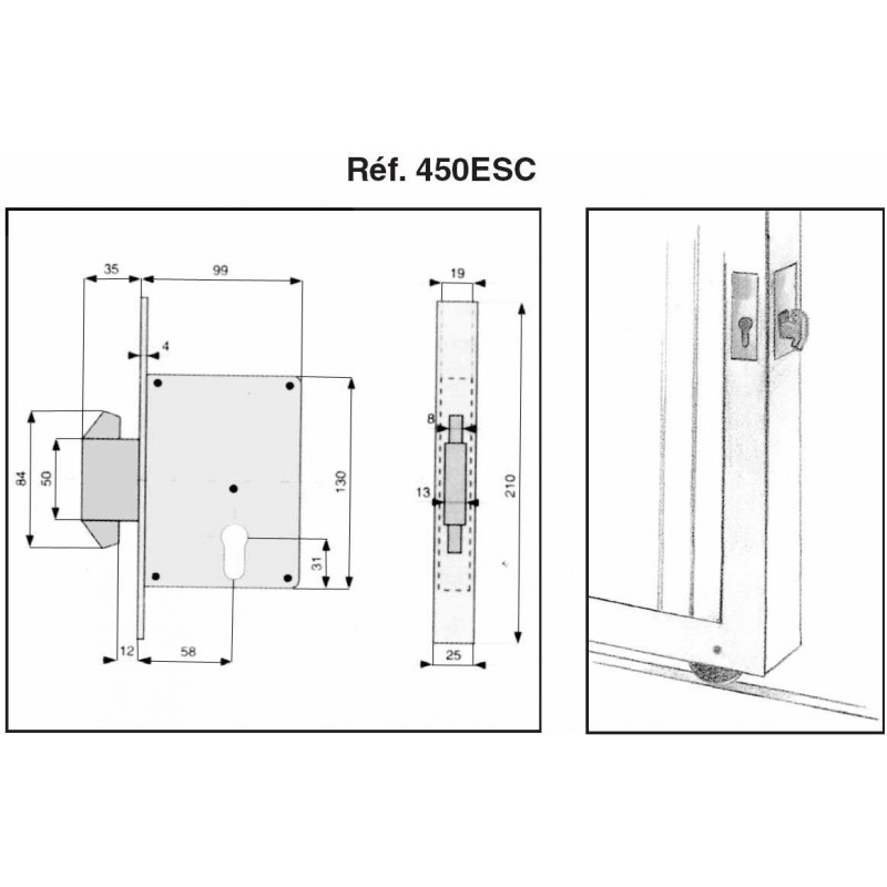 • Serrure à double crochet pour portail coulissant - grand modèle - vendu sans cylindre