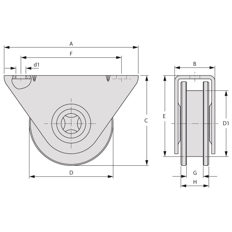 Le galet Ø 100mm avec une gorge en U et un support à visser (VA1207.100.2) de chez FAC est conçu pour une utilisation efficace et durable dans les applications de portails. Ce produit est fabriqué avec des matériaux de haute qualité pour assurer une longue durée de vie et une performance optimale.