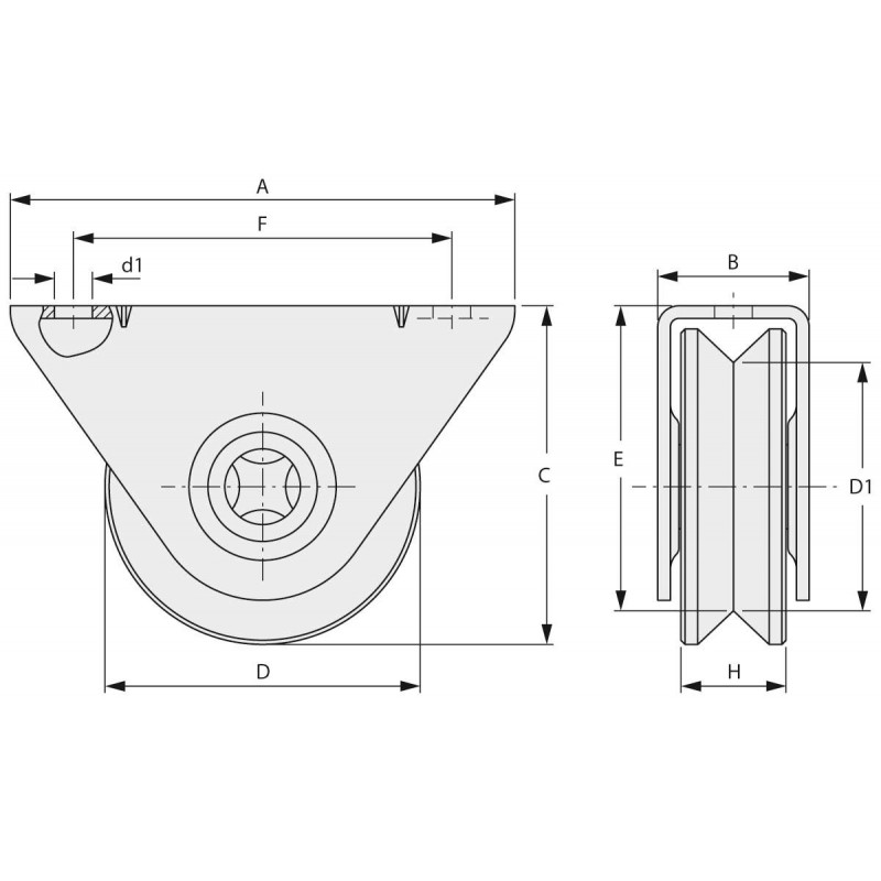 Le produit référence 101.90 de FAC (VA1107.090) est un galet gorge en V de haute qualité, conçu pour être utilisé dans les applications de portails. Ce galet est doté d'un support à visser Ø90mm et d'un roulement pour une utilisation fluide et efficace.