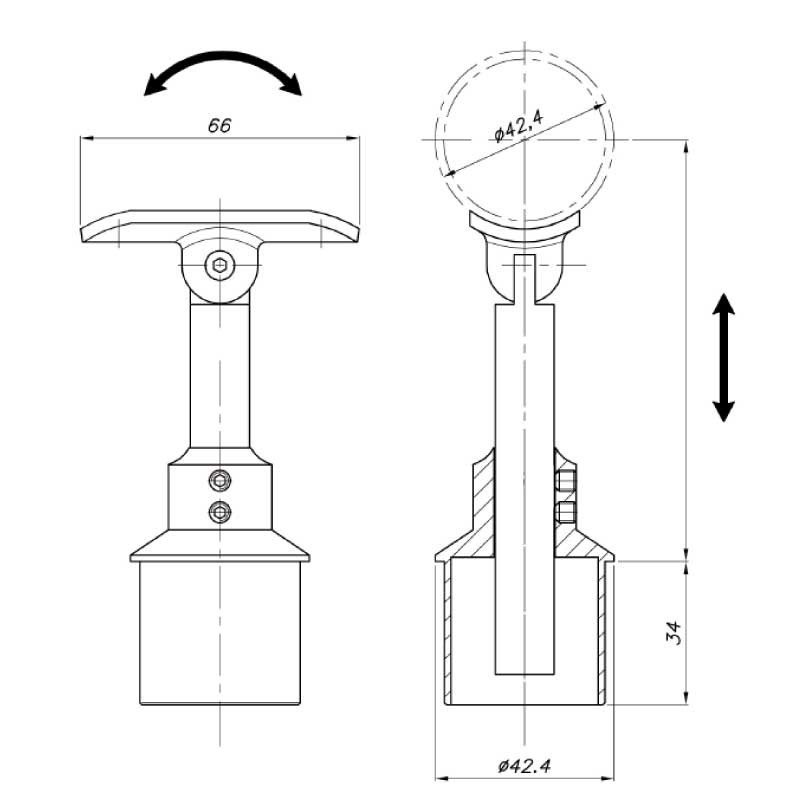 Support main-courante - règlable en hauteur - Inclinable - pour tube ø42,4x2,0mm