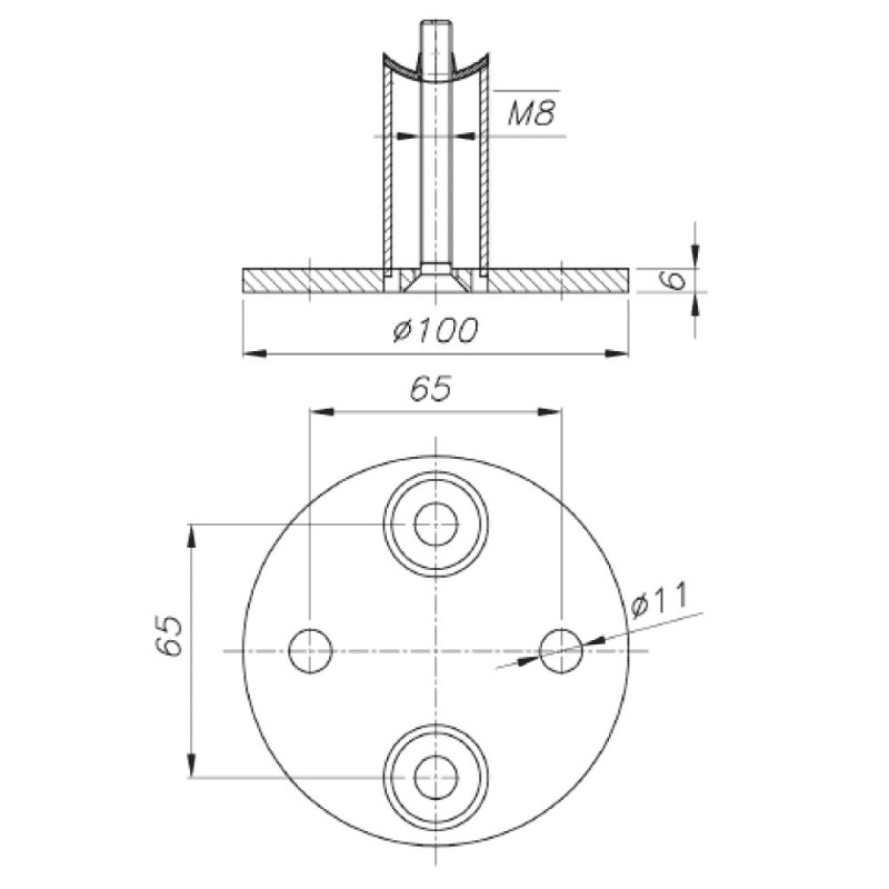 Support mural ø100x6mm pour tube ø42,4mm