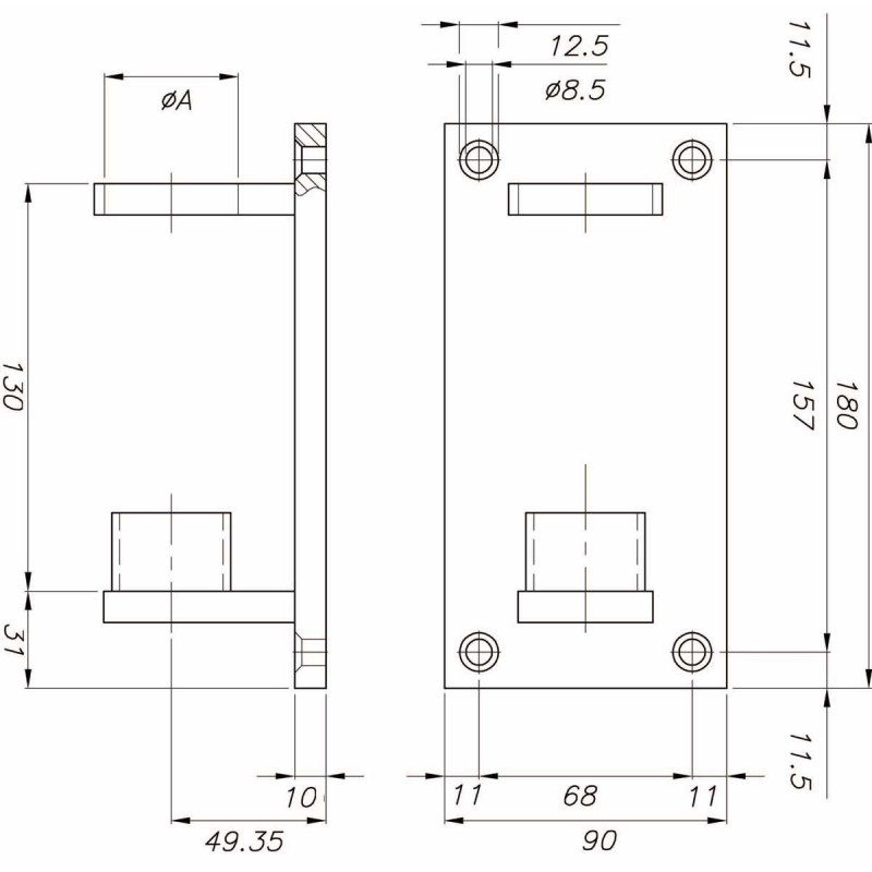 • Support de fixation latéral pour montants - tube ø33,7x2,0mm