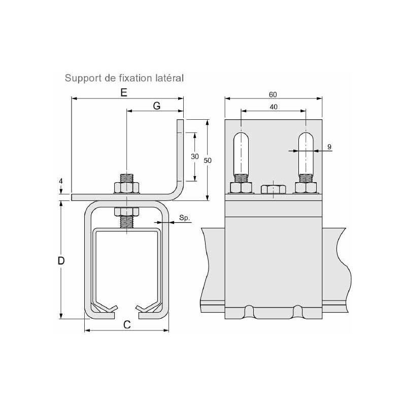 • Support de Rail - Fixation murale 52x73 mm