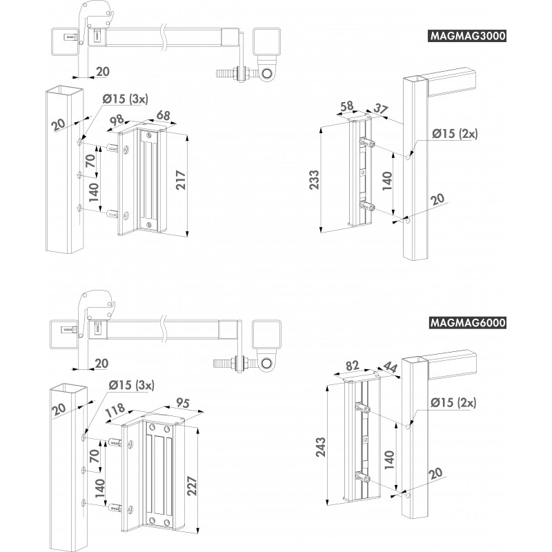 • MAG6000 : Force minimum : 6000N (600 kg)