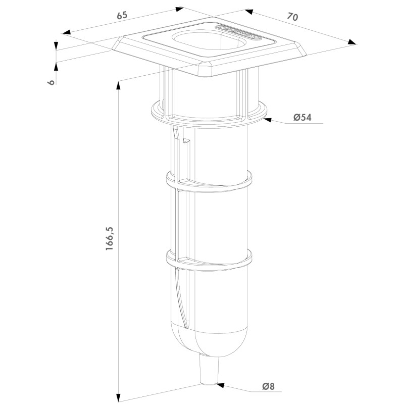 • Sabot de sol sans butée , trou de réception pour diam 20mm max